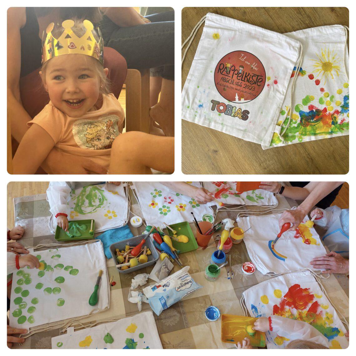 Wir bereiten uns für die Sommerpause vor und bemalen Turnsäckchen für die baldigen Kindergartenkinder!