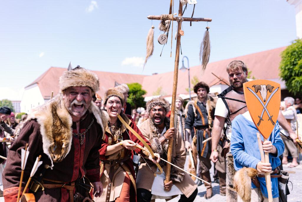 Die Kulturblos’n ist auch bekannt für Ihre oftmals lautstarken Auftritte als Magyaren. Neben den meist selbst gemachten Kostümen bleibt der Stocktanz oftmals in Erinnerung. Die Magyaren sind immer am Mittelalterfest in Arnstorf und Schlossherbst in Mariakirchen mit dabei.