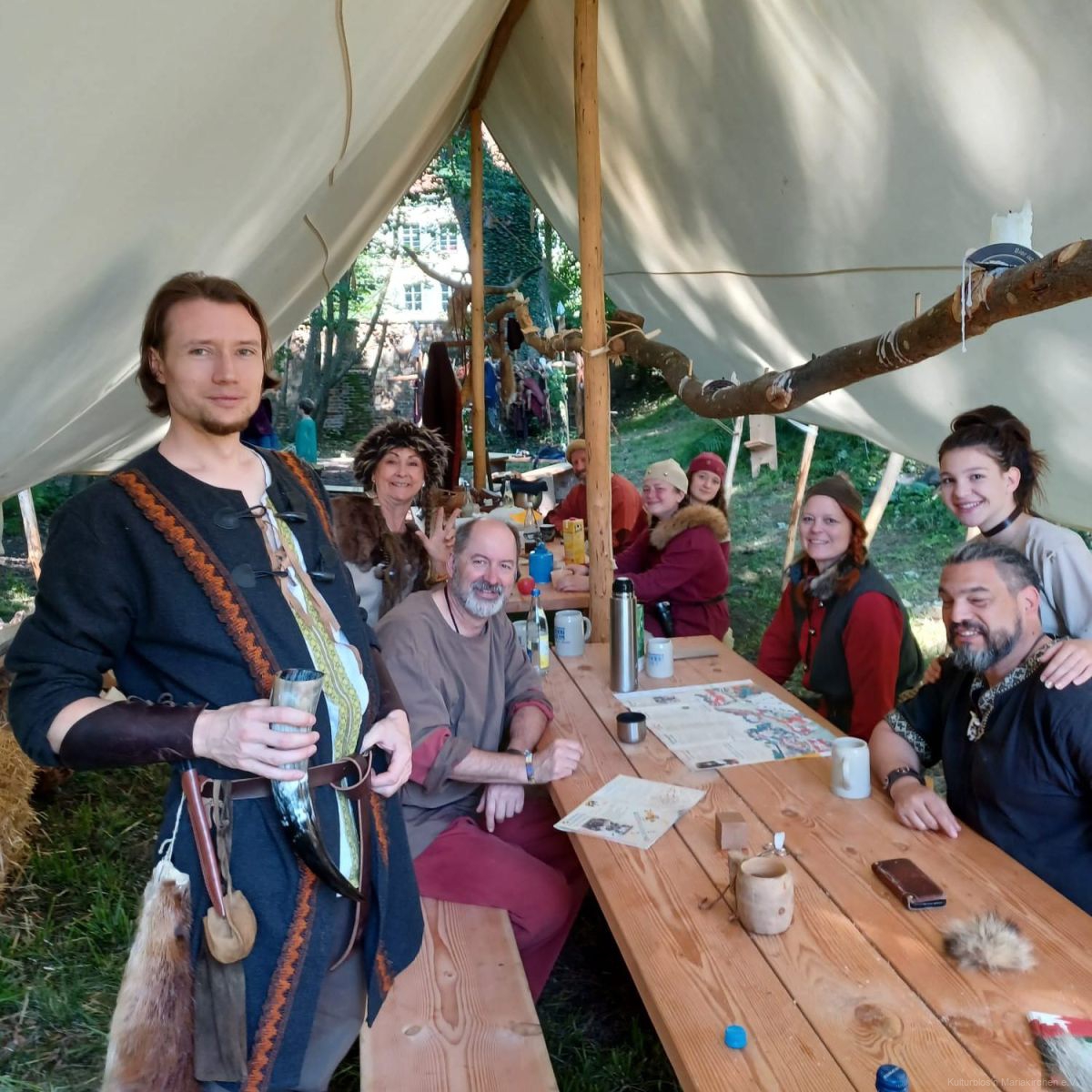 Es waren wunderschöne 3 Tage im „Mittelalter“: Perfektes Wetter, viele Besucher und Mitglieder der Kulturblos’n bis spät in die Nacht. Unser Lager hatten wir wieder im Burggraben aufgeschlagen, die leckere Gulaschsuppe durfte natürlich nicht fehlen (ein Dank an die vielen Spender*innen) 🙂